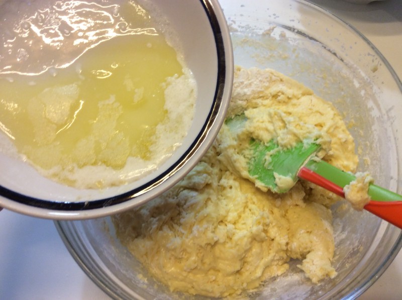 Sciolgo il burro e lo lascio raffreddare lo aggiungo poco per volta al composto
