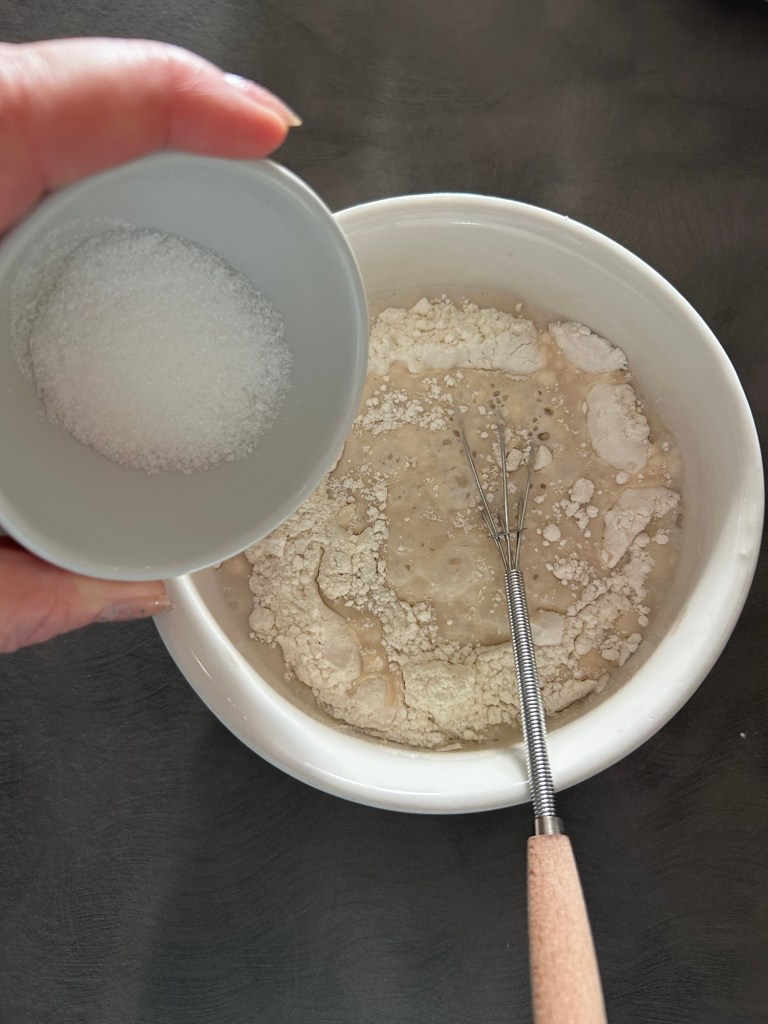 Mescolo bene, copro con pellicola e lascio lievitare per mezz’ora
