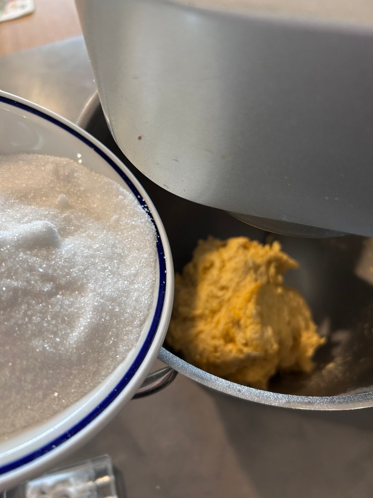 Inizio ad impastare, quando l’impasto inizia a prendere forma aggiungo lo zucchero poco per volta