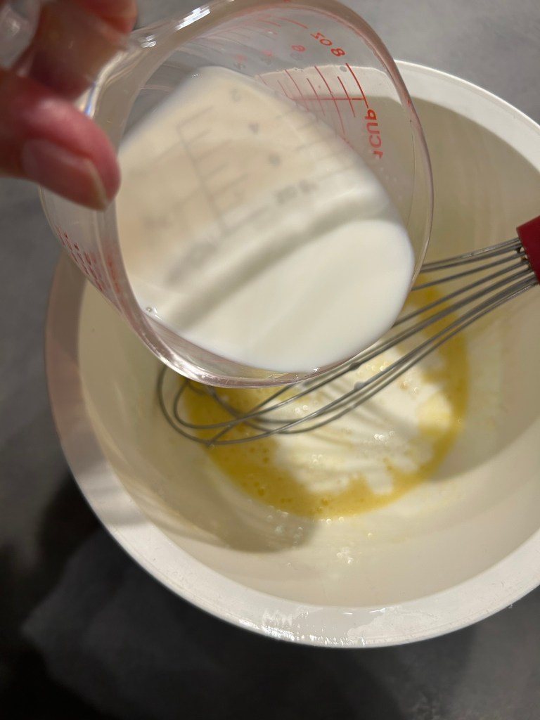 Mescolo con una frusta poi aggiungo il latte