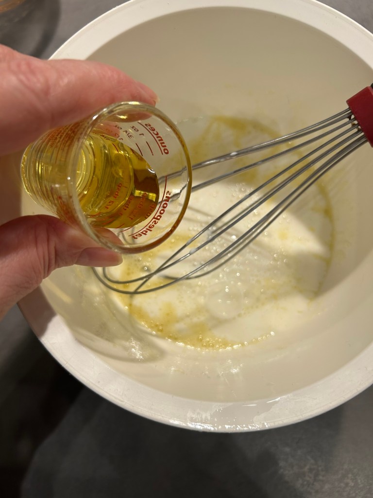 Mescolo con la frusta, aggiungo il latte