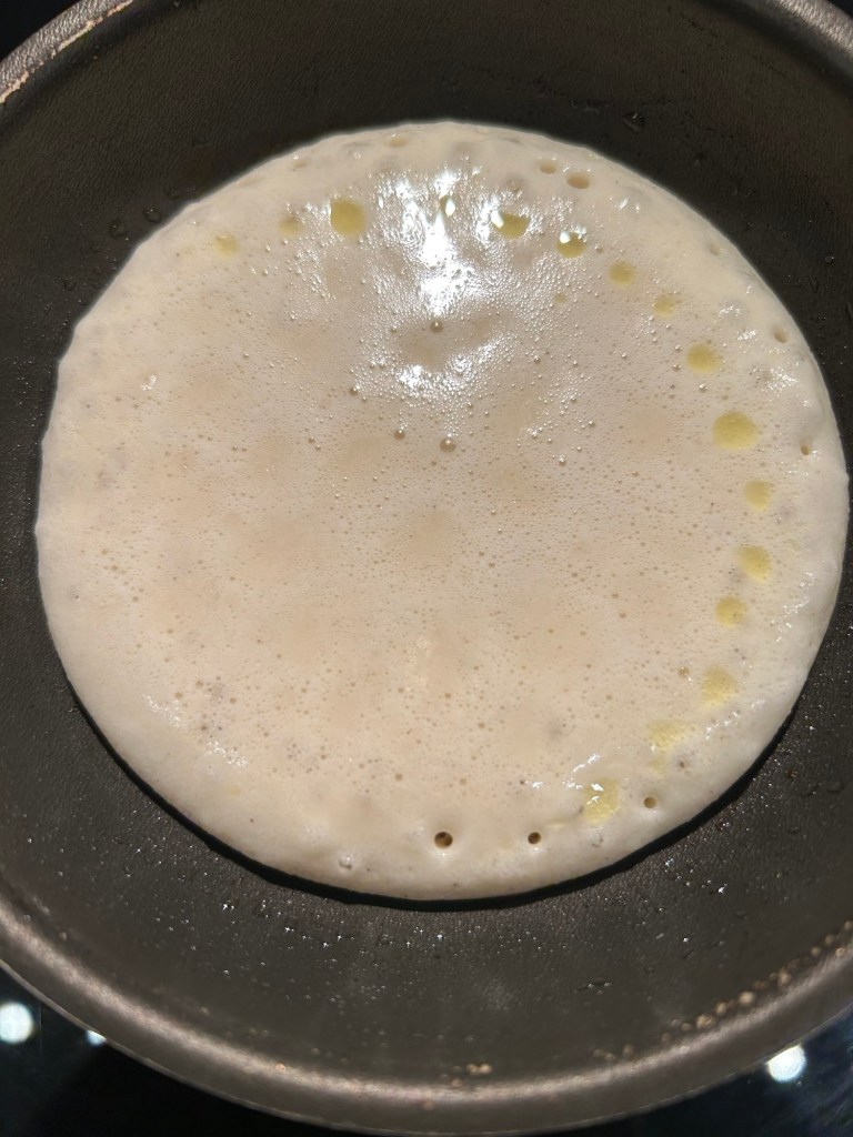 Aspetto che si formino tante bollicine poi con una spatola lo giro e cuocio ancora per qualche minuto, proseguo fino ad esaurimento della pastella, adesso gustateli farciti a piacere