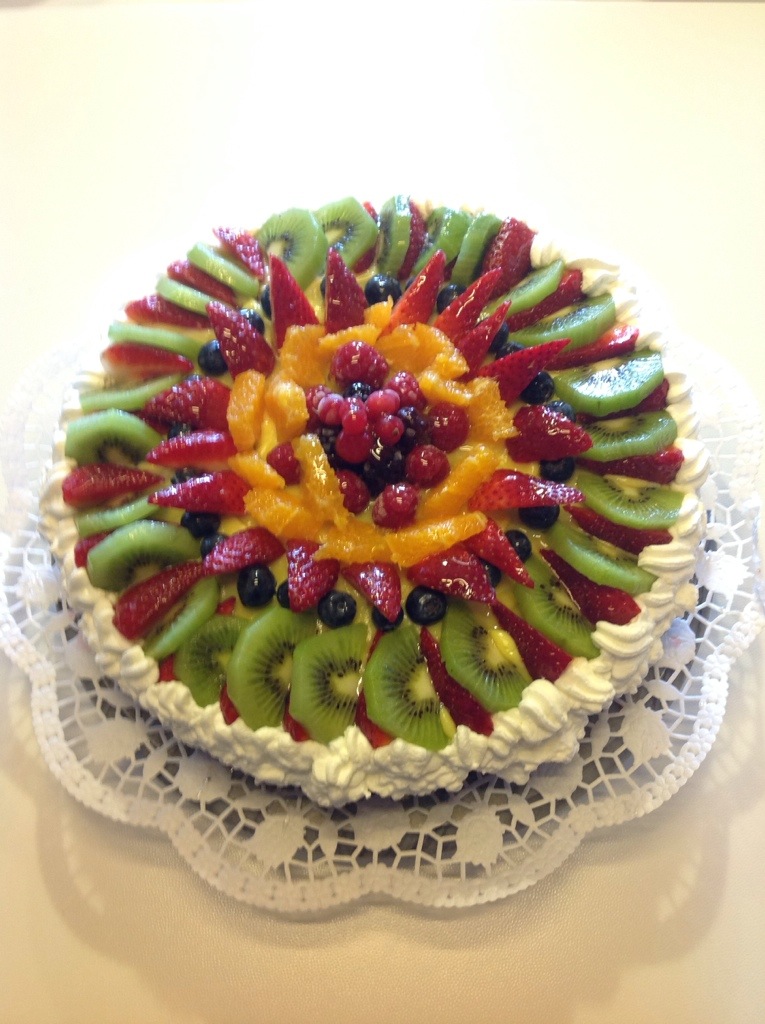 Potete decidere di guarnire il Pan di Spagna con della frutta fresca e panna montata