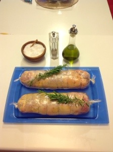 Ho arrotolato e legato il pollo chiudendo bene le estremità.