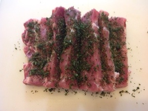 Prendo la carne e dal lato più lungo faccio 5 incisioni fino in fondo , deve aprirsi come le pagine di un libro ma deve rimanere attaccato al fondo