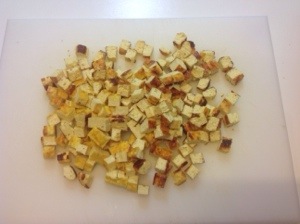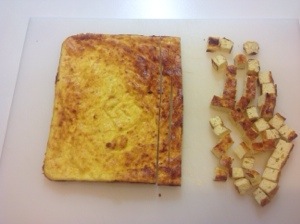 Tagliare il composto a strisce di circa 1 cm e poi a cubetti