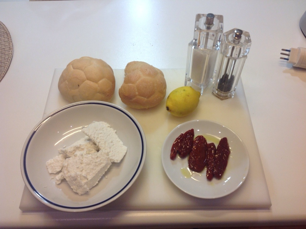 L’ ho messa sopra i crostini con qualche pezzetto di pomodorini , sale , pepe , origano poco olio