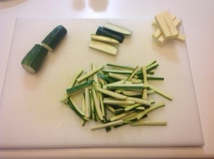 Taglio le zucchine a julienne o bastoncino , io elimino sempre la parte centrale perché acquosa e poco saporita ( potete conservare per un brodo vegetale )