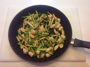 Unisco le code di gambero ( lasciando da parte le 4 intere ) alle zucchine