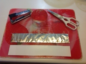 Prendete degli stampini da forno, se non li avete niente paura prendete una striscia di cartoncino rivestitela di carta stagnola e chiudetela ad anello chiudendo co due graffette ,