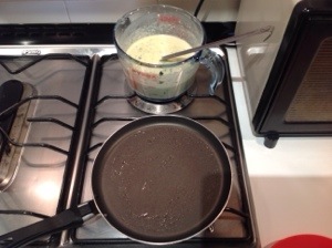 Sciolgo il burro nella padellina delle crepes poi lo tolgo e lo verserò freddo nella pastella