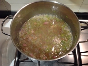 Aggiungo il brodo circa 1 litro e mezzo e porto ad ebollizione