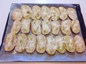 Io ho preparato dei crostini di pane spennellati con olio e cosparsi di parmigiano che ho poi tostato in forno