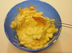 Mescolo bene, aggiungo alle uova il burro tiepido