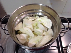 Prendo i finocchi, li taglio a fette di circa 1 cm li lavo bene