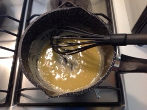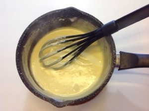 Tolgo dal fuoco attendo qualche minuto e aggiungo mescolando velocemente 2 tuorli e 50 gr di grana