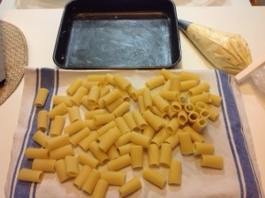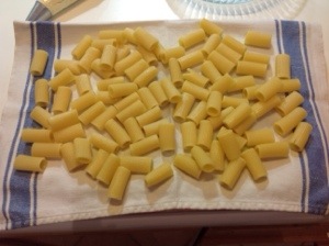 Cuocio la pasta a metà cottura, la scolo e la stendo sopra un canovaccio