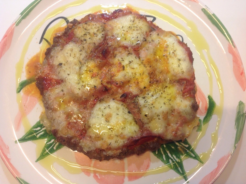 Inforno a 180 gradi per 10 minuti, poi tolgo la teglia dal forno, dispongo le fette di prosciutto, la mozzarella a fette, origano e un filo di olio