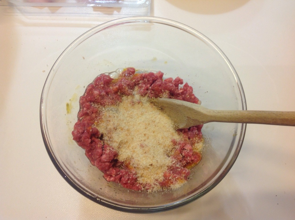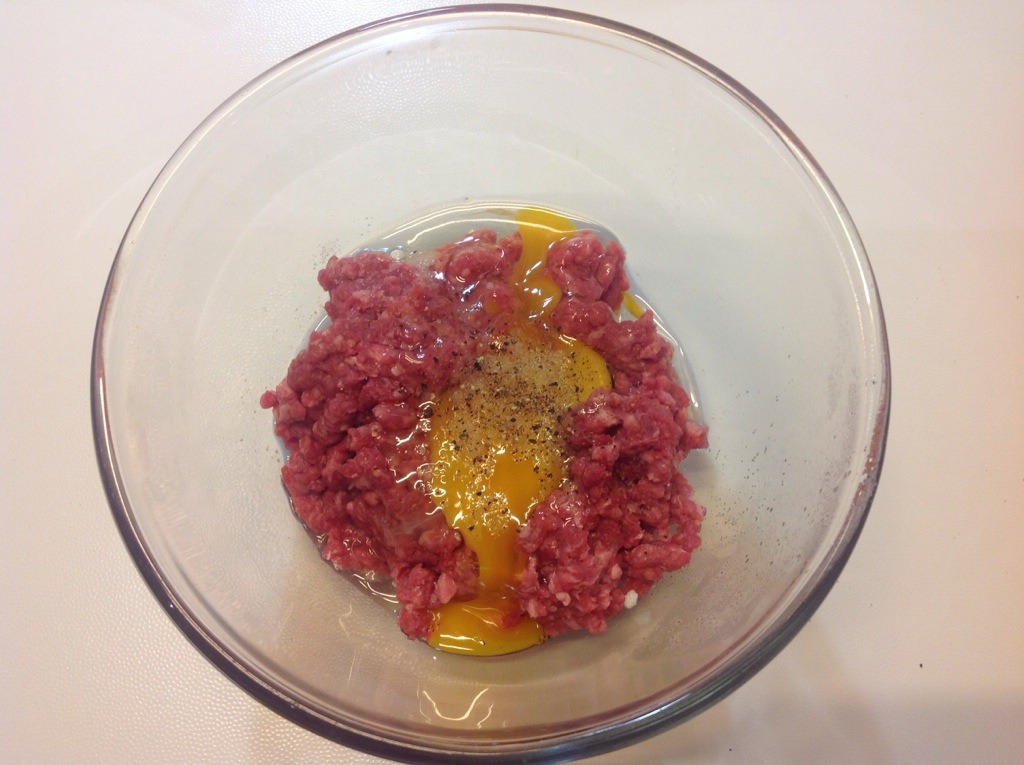 In una ciotola mescolo il macinato con l’ uovo