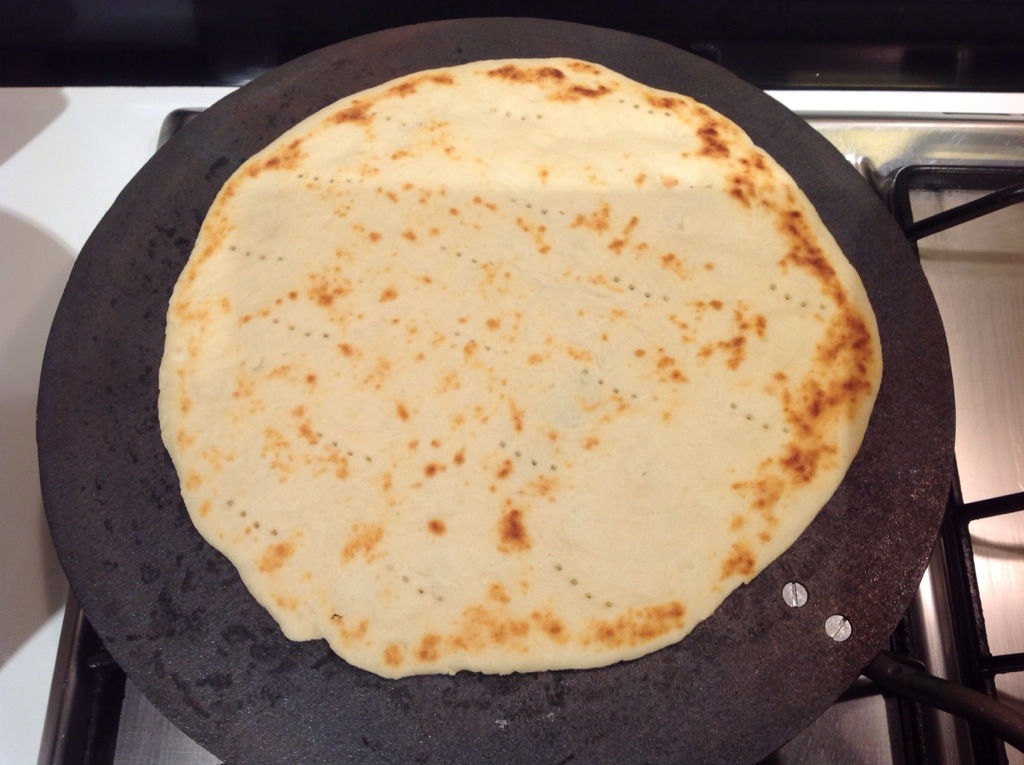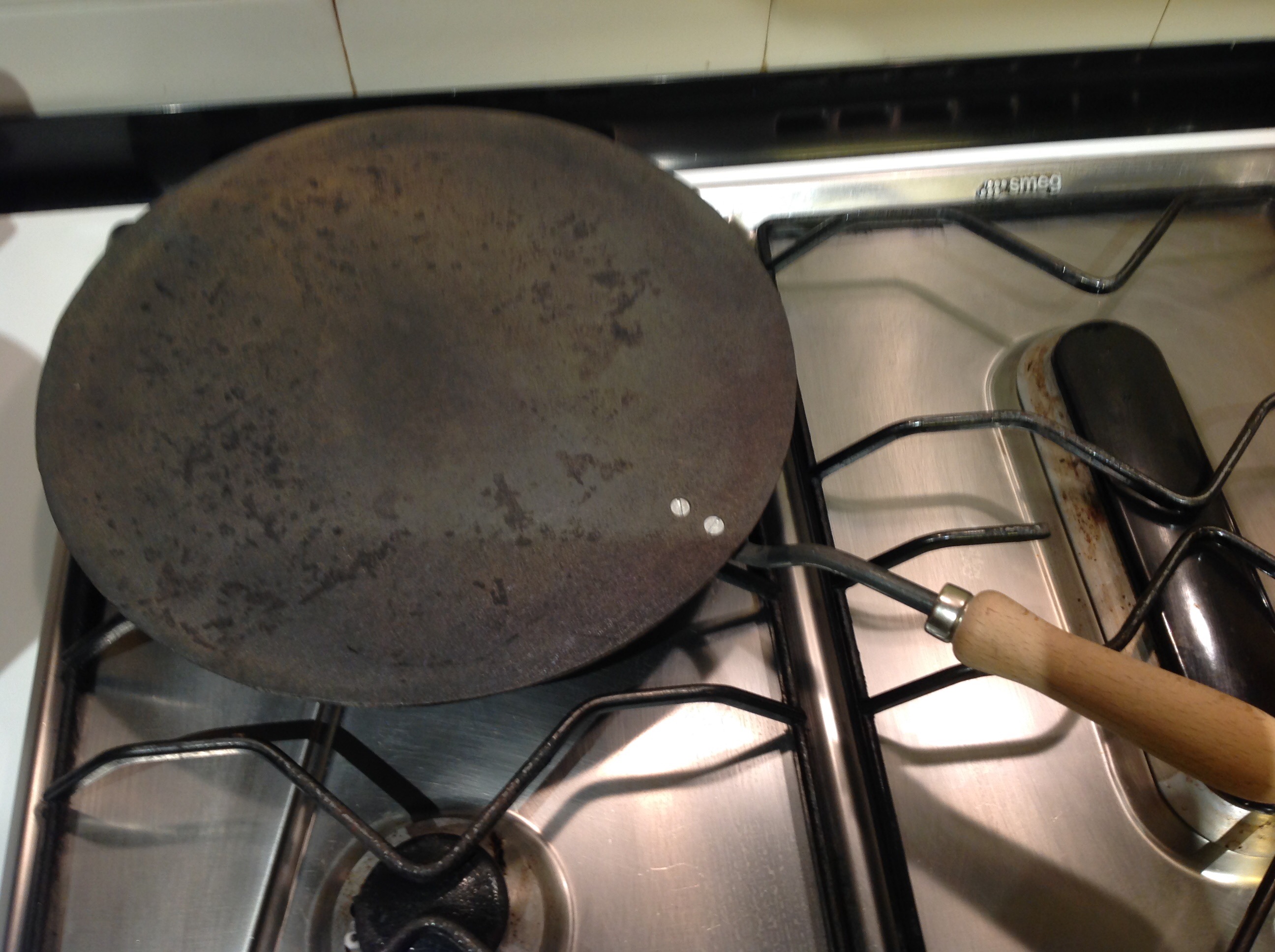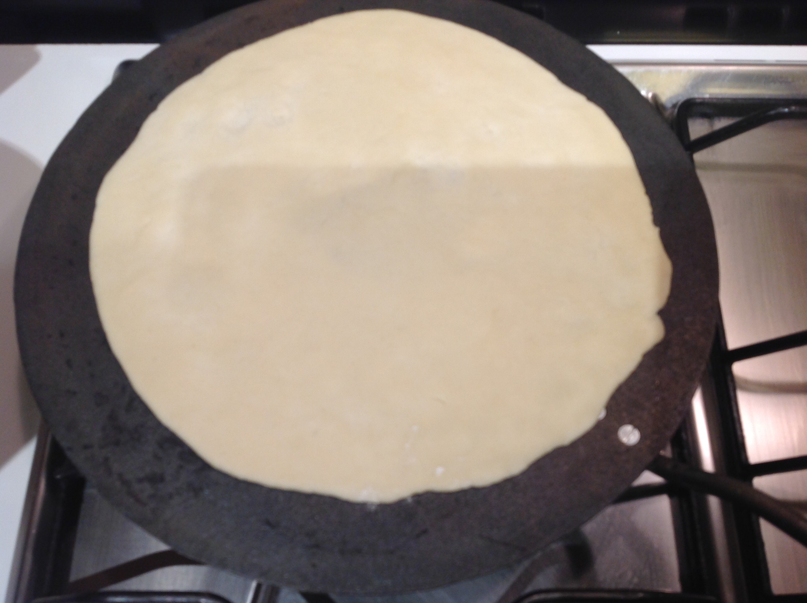Ho scaldato il testo di ferro (che è proprio la “pentola” per la piadina) se non lo avete adoperate una padella bassa tipo quella per le crêpes