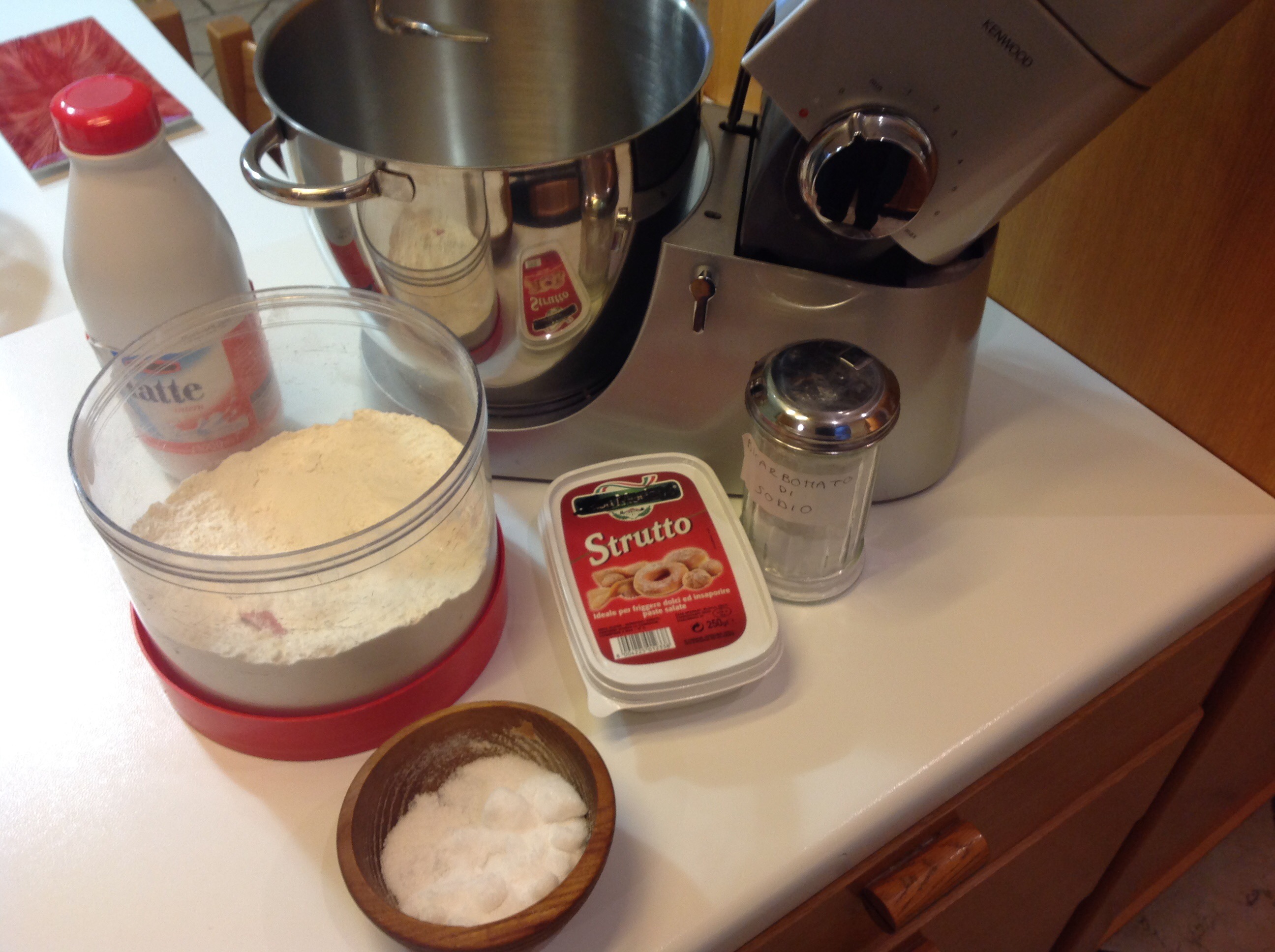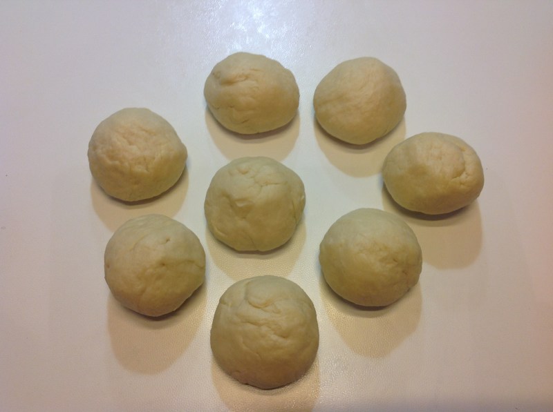In una planetaria (ma potete lavorare a mano) ho impastato tutti gli ingredienti ottenendo un impasto liscio ed elastico, l’ ho messo sul piano di lavoro e ho continuato a lavorarlo poi l’ ho suddiviso