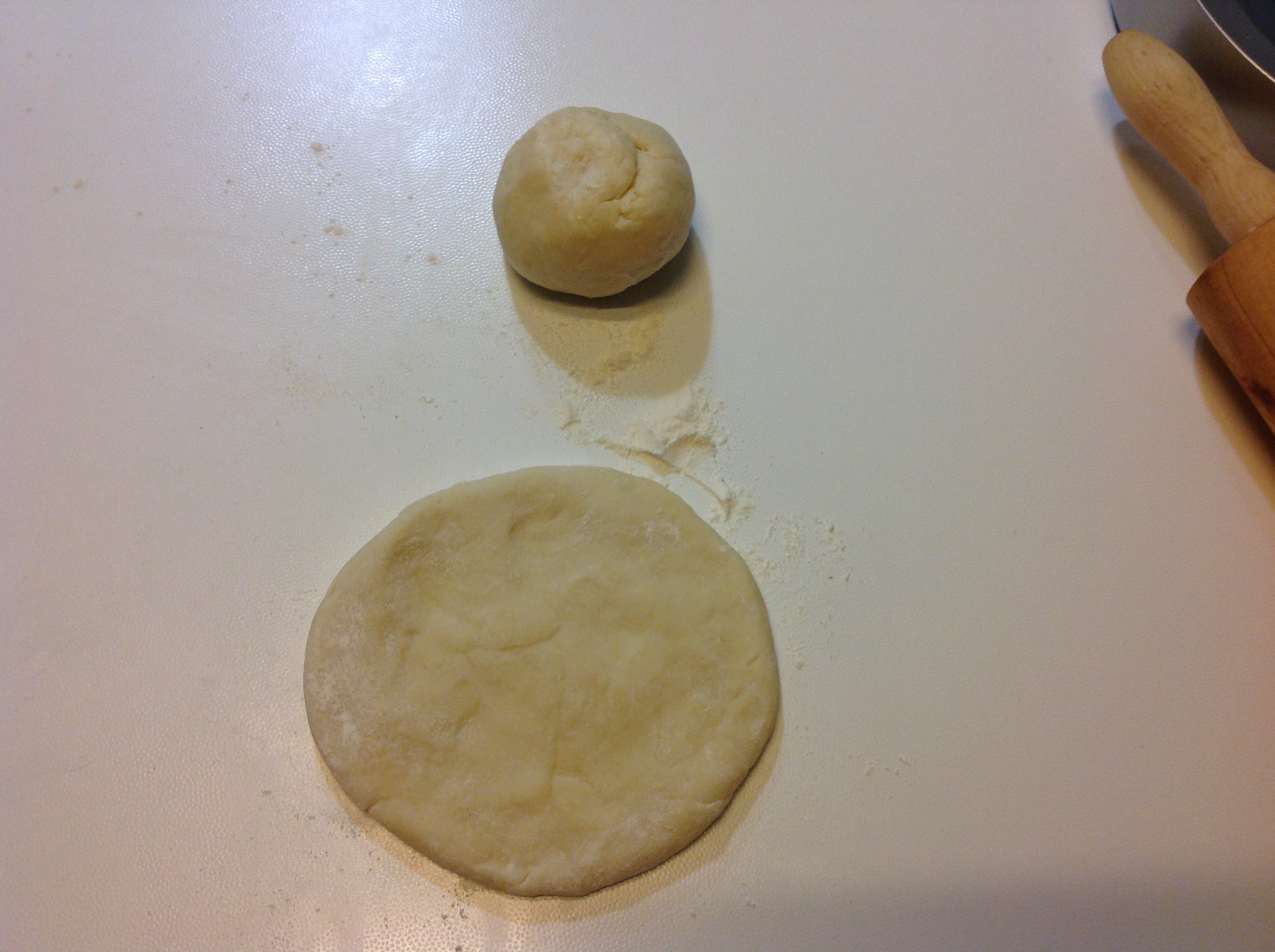Con un matterello di legno le ho allargate dando la forma tonda e sottile