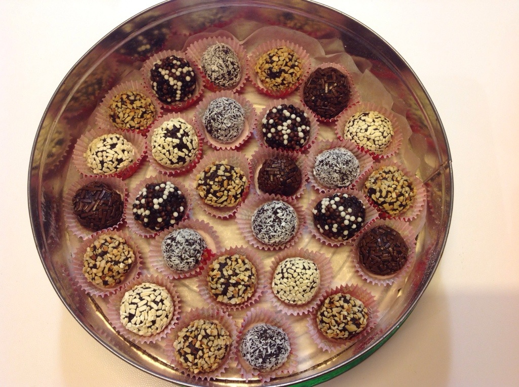 Ho ripreso il composto e ho formato tante palline che ho ricoperto di codette colorate, cocco rapé, granella di nocciole e mandorle, le ho poi appoggiate su pirottini di carta