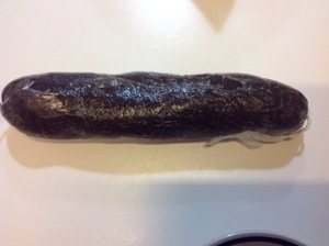 Avvolgo il composto nella pellicola dando una forma di salame e lascio riposare in frigorifero per almeno 1 ora
