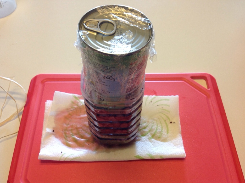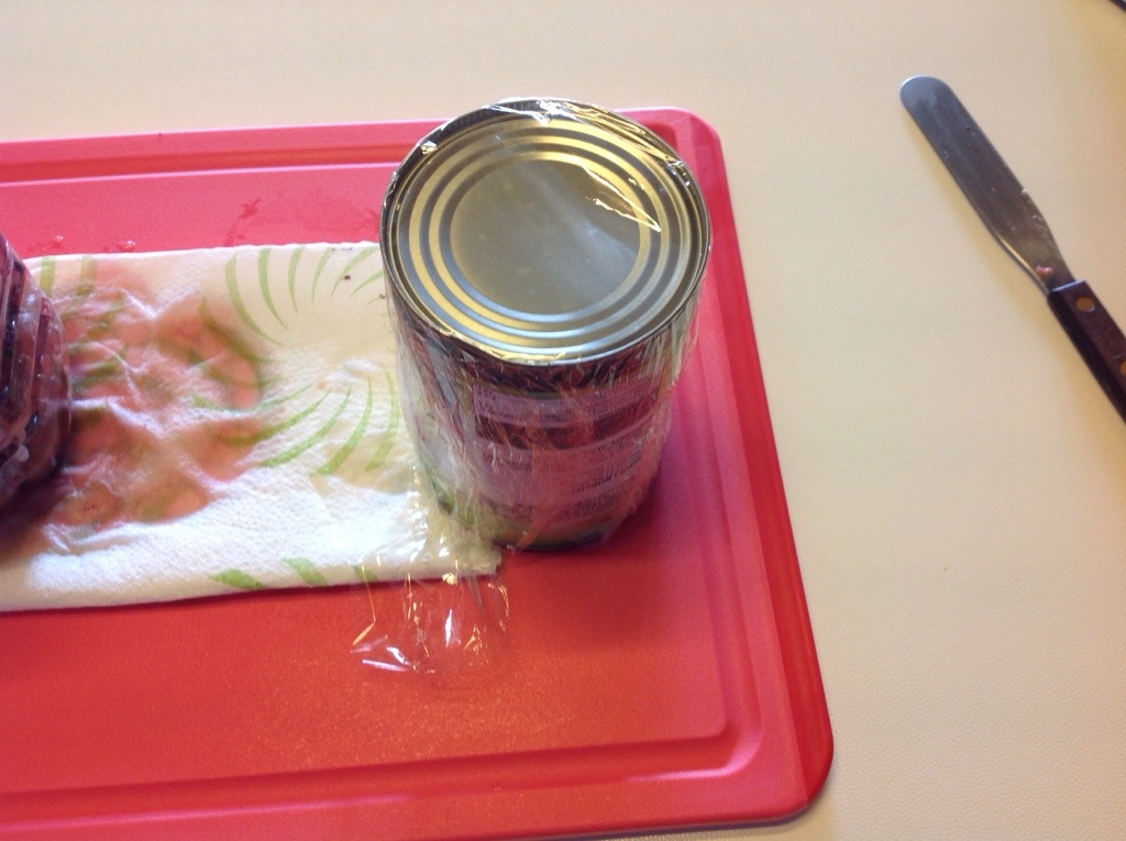Prendo una scatoletta, oppure scegliete qualche cosa che sia della stessa circonferenza della bottiglia e la ricopro con la pellicola