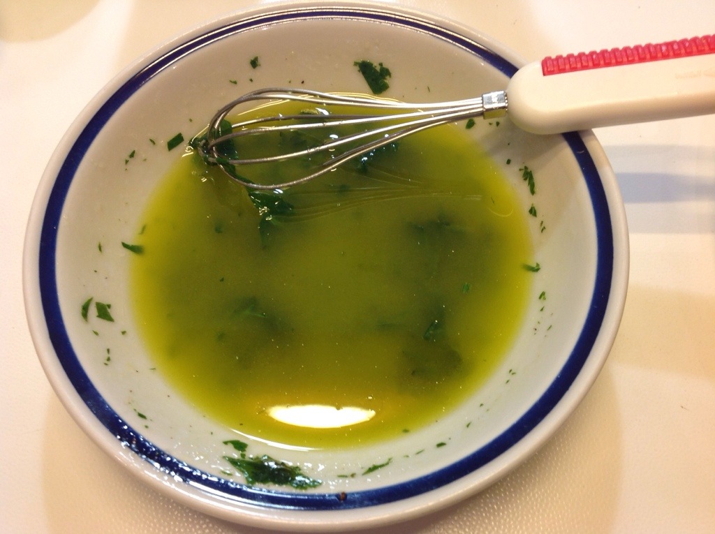 Preparo un’emulsione con il limone, l’olio, il sale e il pepe, il prezzemolo e condisco il tutto