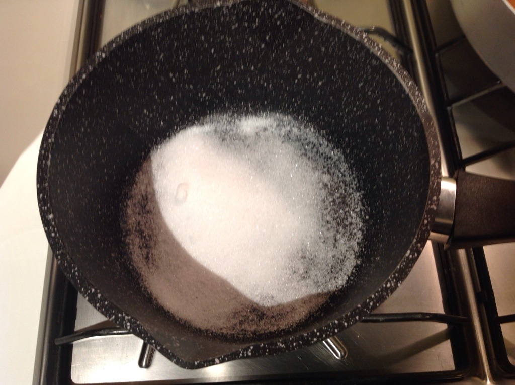 Scaldo un pentolino, verso una piccola quantità di zucchero