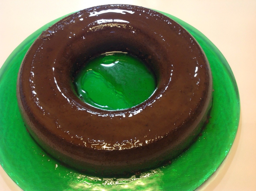 Prendo un contenitore ad anello che è la classica forma del Bonet, ma si può adoperare delle cocottine singole o uno stampo da plumcake e verso sul fondo il caramello