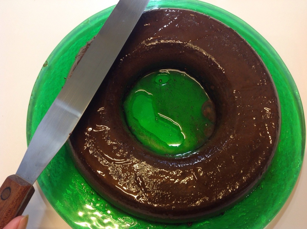 Quando è freddo passo un coltellino intorno ai bordi e molto delicatamente lo capovolgo sul piatto di porta, se non scende subito infilate delicatamente il coltello nel bordo facendo entrare un po’ di aria