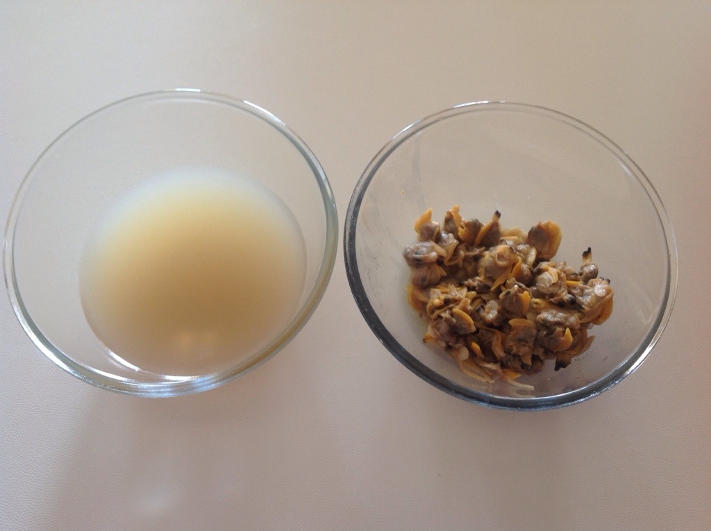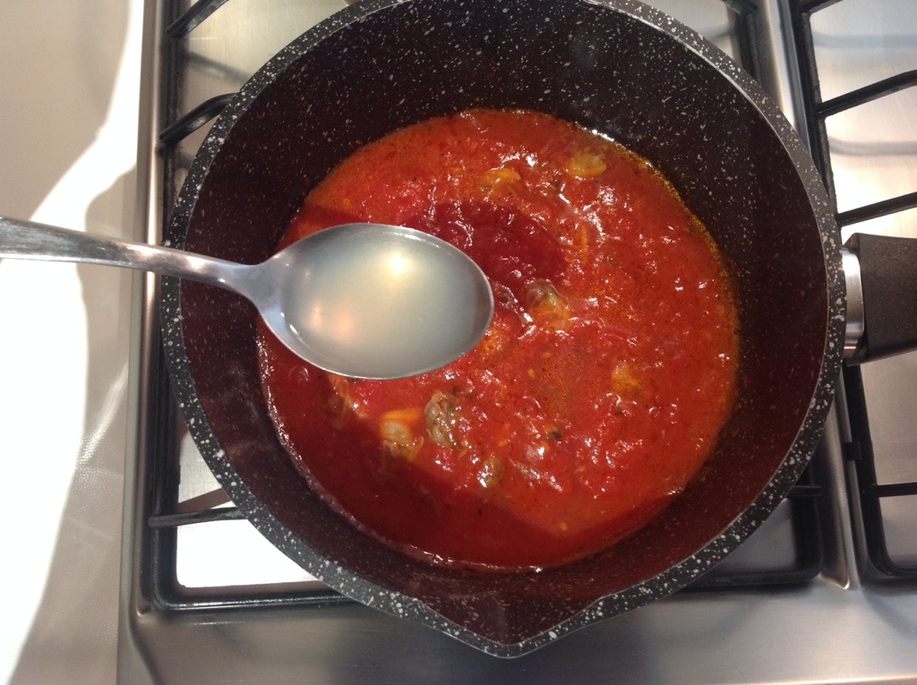 Bastano pochi minuti, spengo il gas e tolgo il mollusco dalle conchiglie, filtro il sugo che resta nella pentola in un colino con una doppia garza per togliere e eventuali impurità