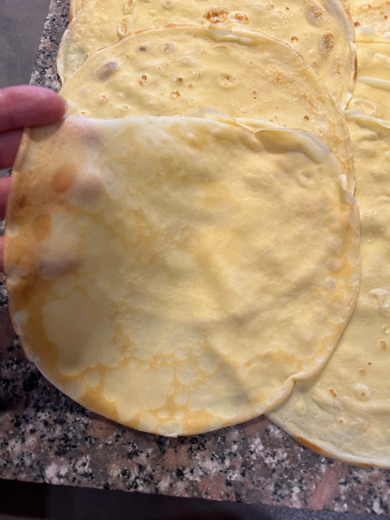 Le cuocio tutte e le appoggio man mano su un canovaccio a raffreddare, con questa dose ne ho preparate 15, si conservano in frigorifero per un paio di giorni appoggiate su un piatto e coperte di pellicola