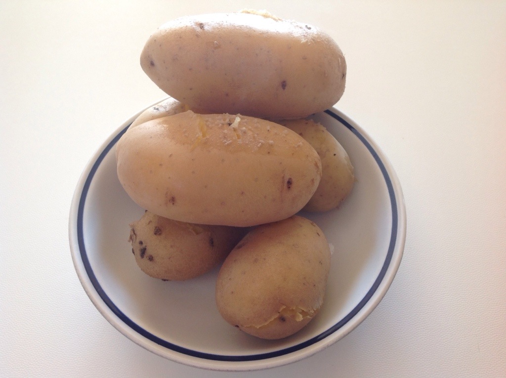 Lavo le patate le metto in una padella coperte di acqua porto ad ebolizione e cuocio per circa 35/40 minuti secondo la dimensione