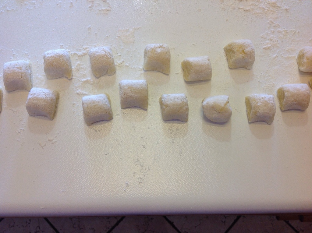 Con un coltello taglio i gnocchi, piuttosto piccoli li separo bene e li infarino un po’