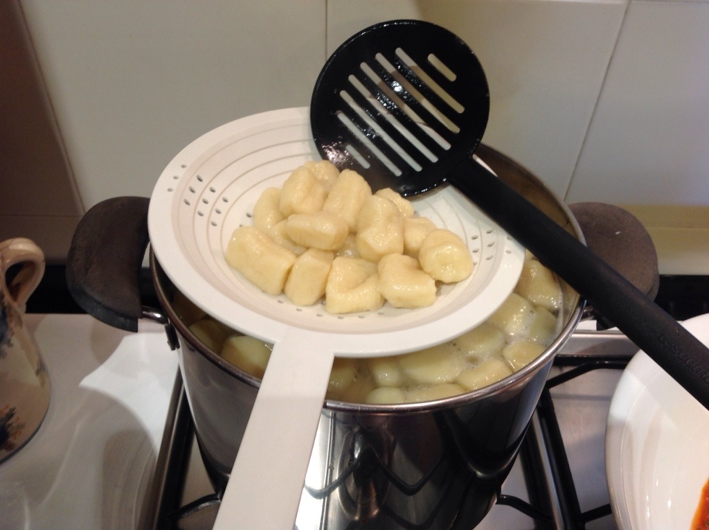Pian piano gli gnocchi iniziano a venire a galla, aiutatevi delicatamente con un mestolo forato e muoveteli un po’ senza spappolarli