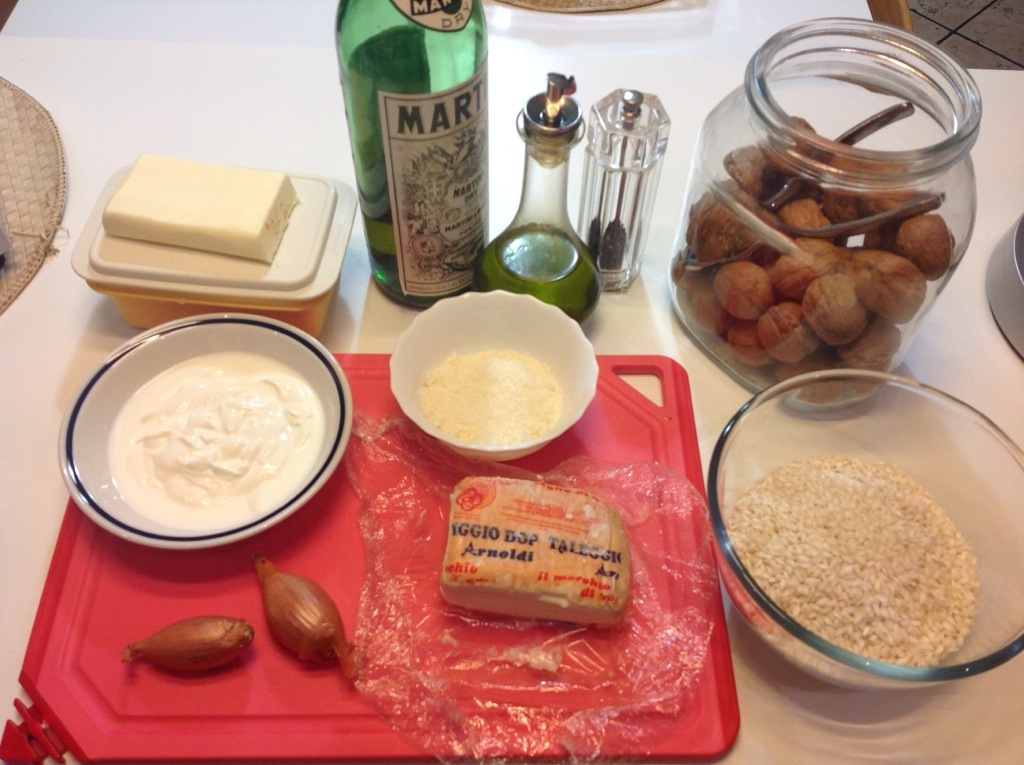 Taglio a cubetti il Taleggio e trito le noci tenendone da parte 4 per la decorazione