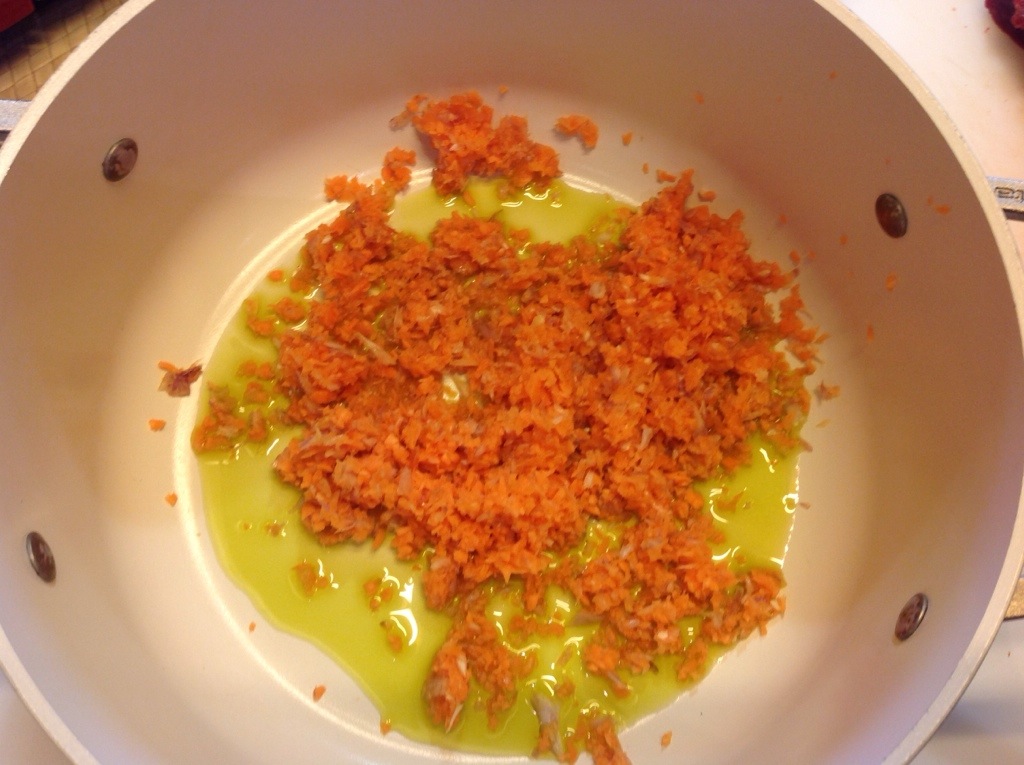 Trito la carota e gli scalogni finemente in modo che durante la cottura si sfaldino quasi del tutto e si amalgamino meglio alla carne
