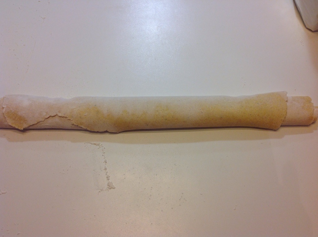 Arrotolo la pasta dopo averla infarinata abbondantemente