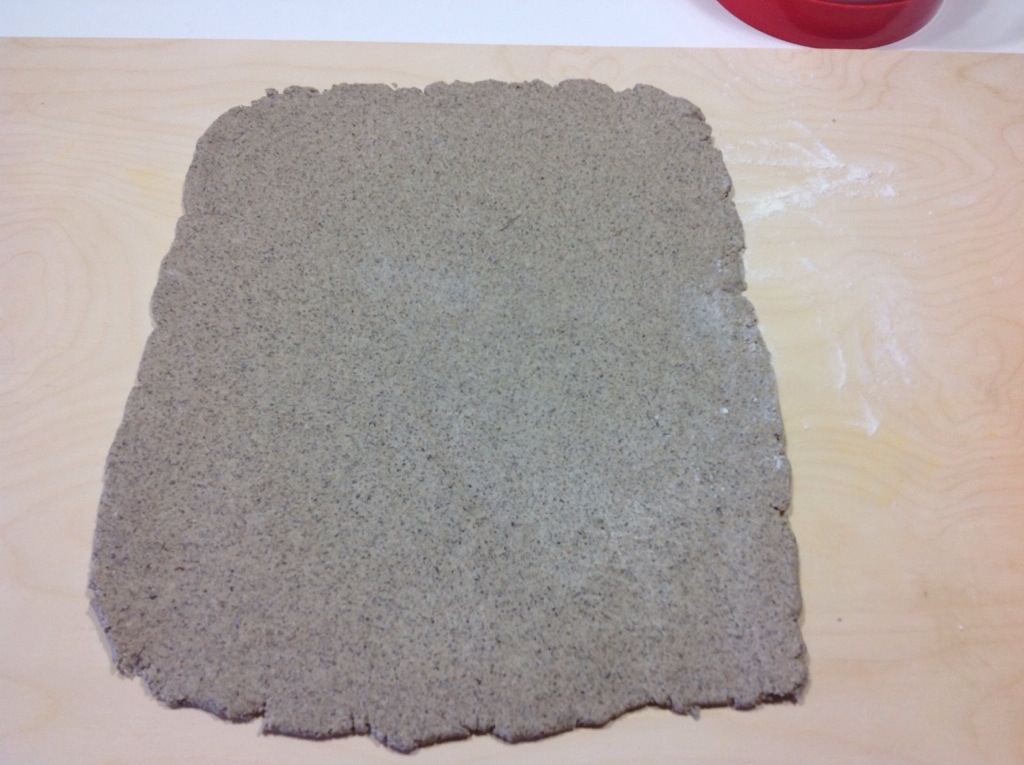 Lo appoggio sul piano di lavoro e impasto per qualche minuto, è un impasto meno elastico non avendo uova e resta un po’ più duro, e tende a slegare, lavoratelo con cura