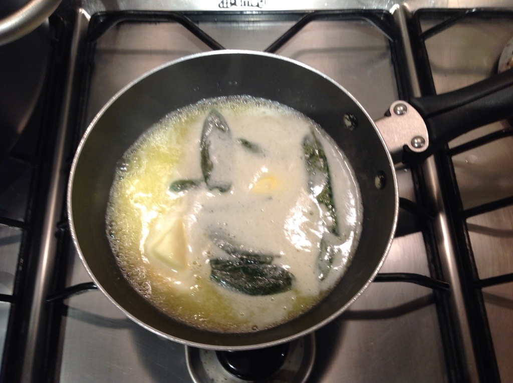 Nel frattempo soffriggo il burro con l’aglio e qualche foglia di salvia