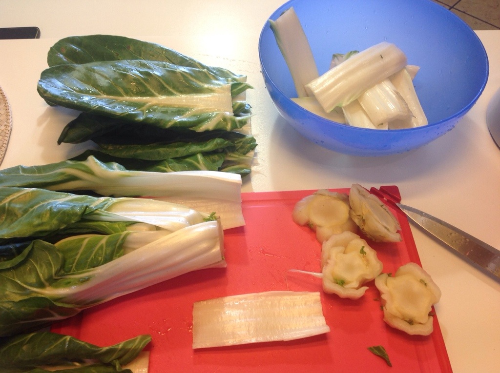 1 mazzo di coste di bietole (solo la parte bianca del gambo ,con le foglie ho preparato i pizzoccheri)