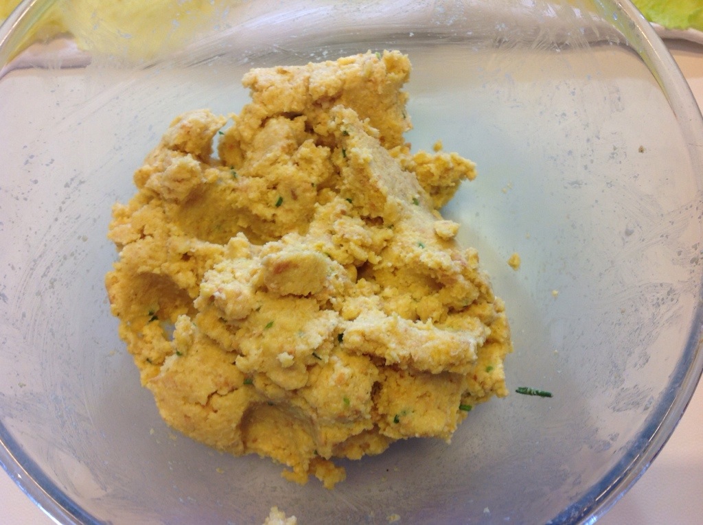 Impasto prima con un cucchiaio e poi con le mani, deve risultare un composto ben legato ma morbido