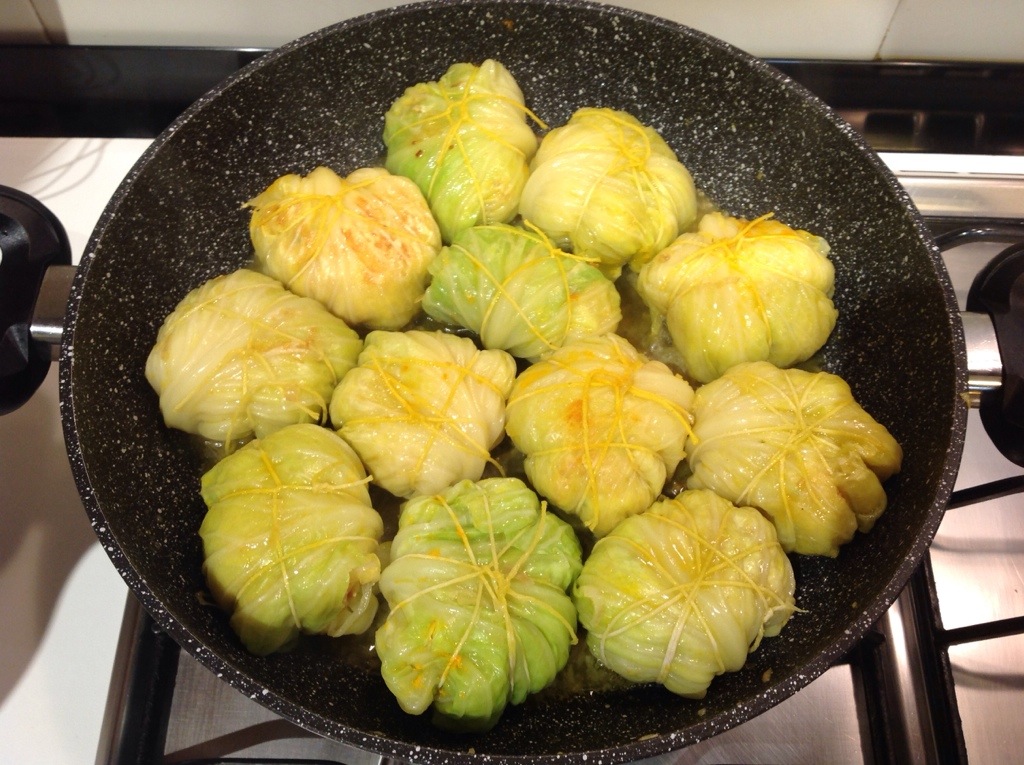 Li chiudo all’interno del ripieno e lo appoggio al centro delle foglie