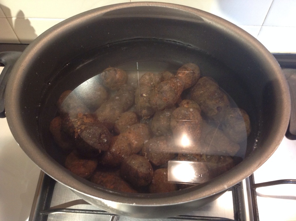 Le verso in una pentola con acqua fredda e porto a bollore, le cuocio per circa 30 /40 minuti, pungetele per vedere se sono cotte
