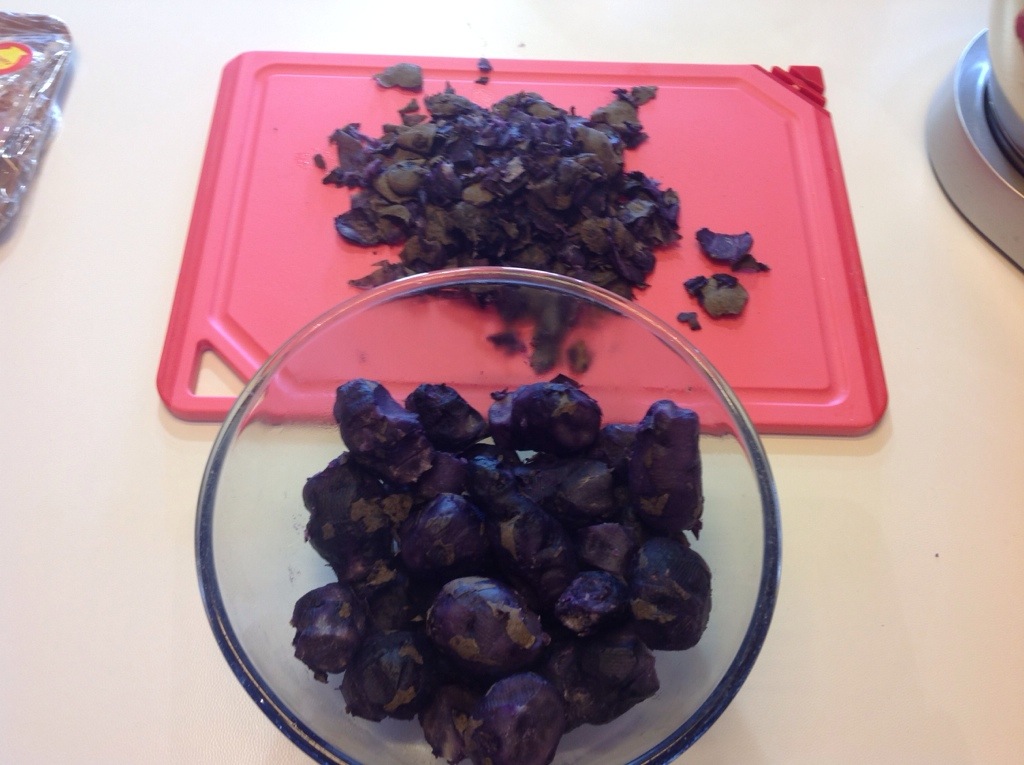 Le patate Vitelotte, erroneamente dette viola per il colore della polpa, sono anche dette nere o tartufo