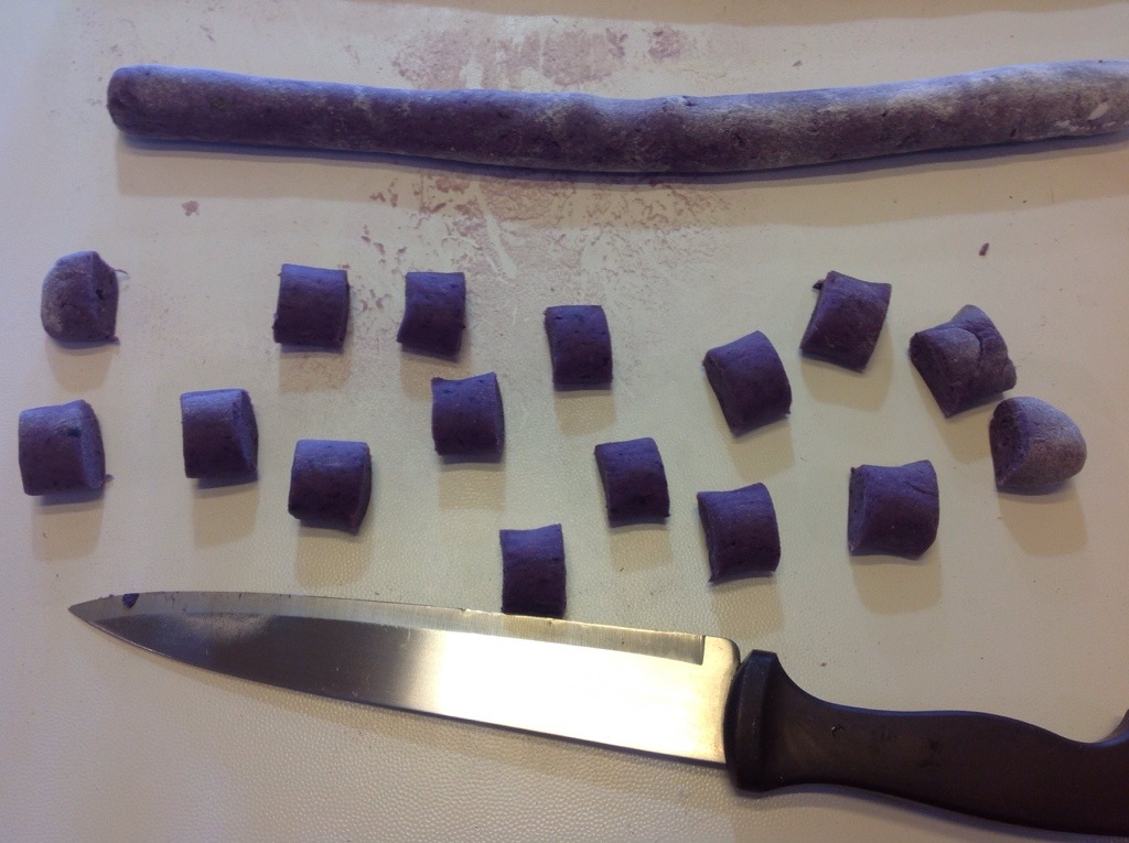 Taglio dei piccoli pezzetti come per i comuni gnocchi
