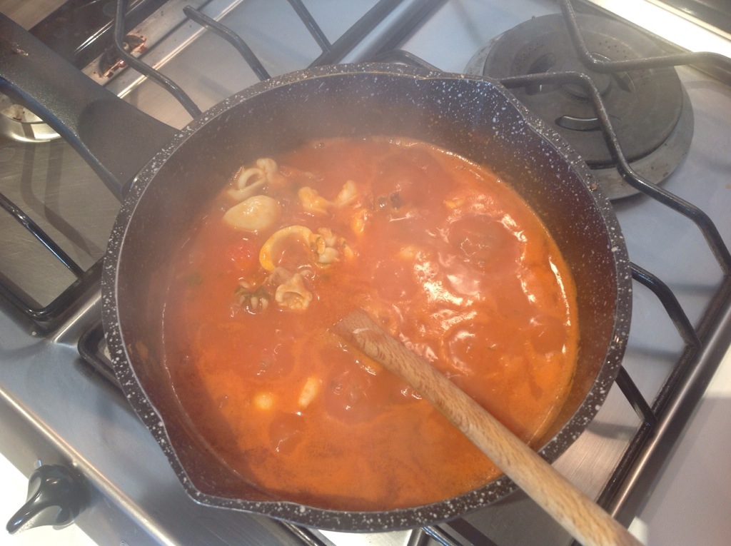 Il sugo deve restringere e assumere una consistenza densa, assaggiate e regolate di sale, devono essere un po’ piccanti